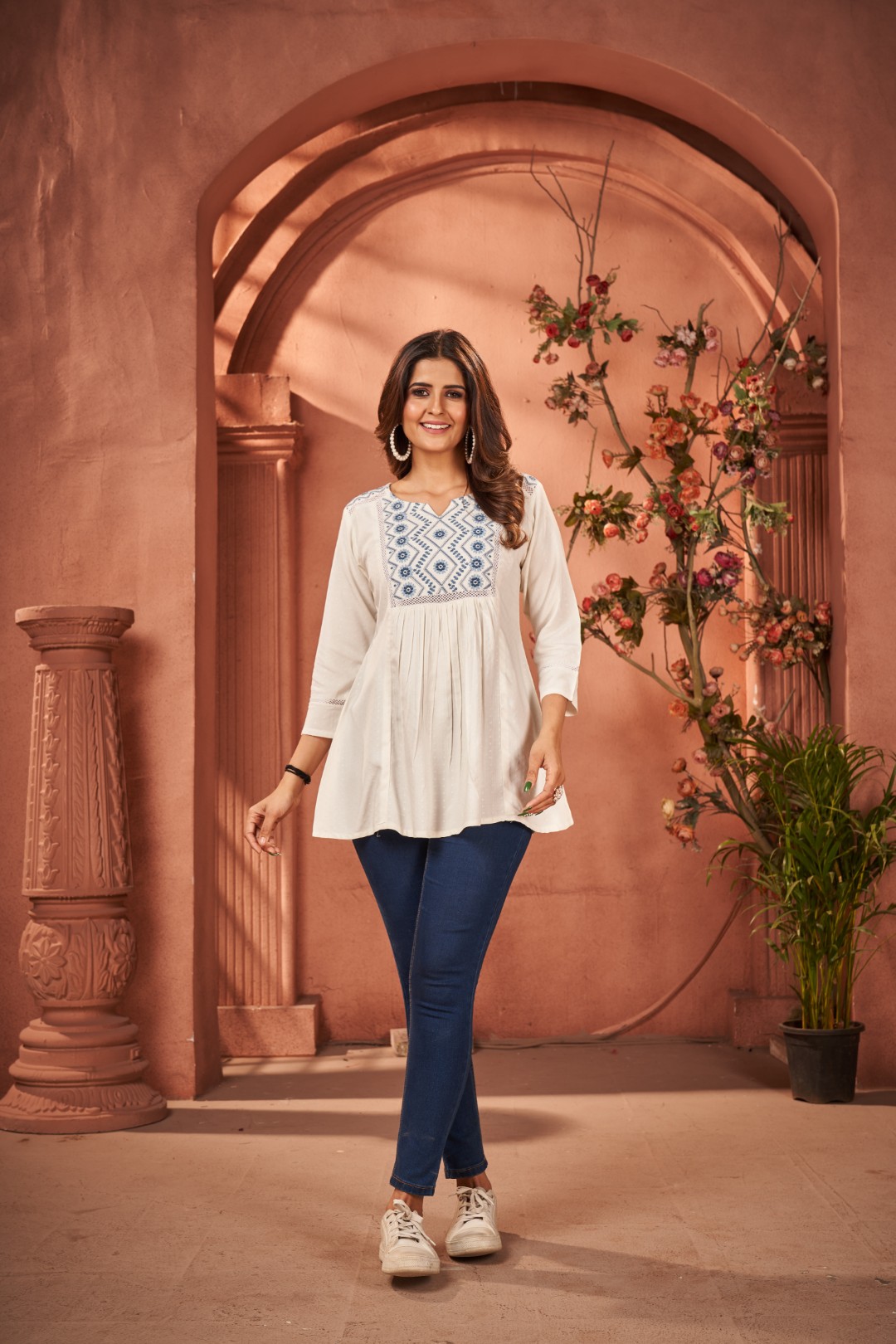 Fabric: Soft and breathable rayon blend, ensuring comfort with an elegant drape.