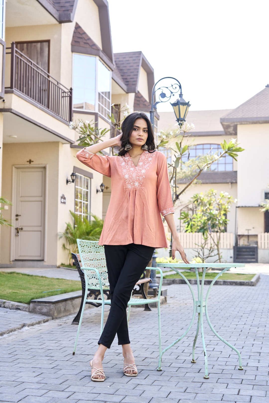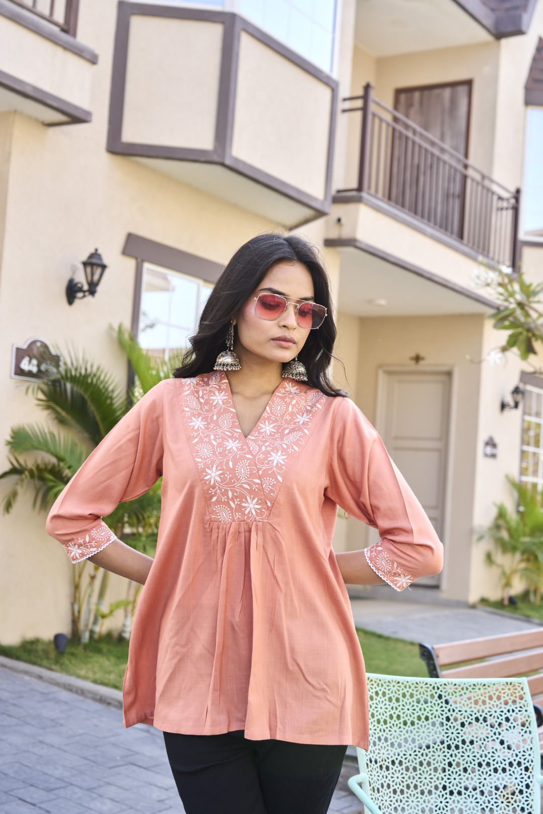 Style: A-line short kurti in a refreshing coral hue, designed for casual chic.