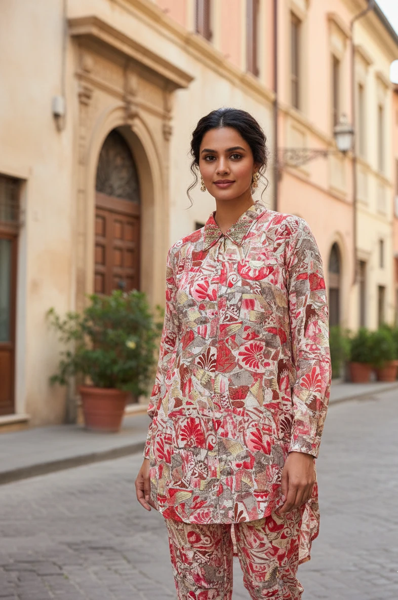 Style: Contemporary ethnic Coord Set (Matching Tunic and Trousers).