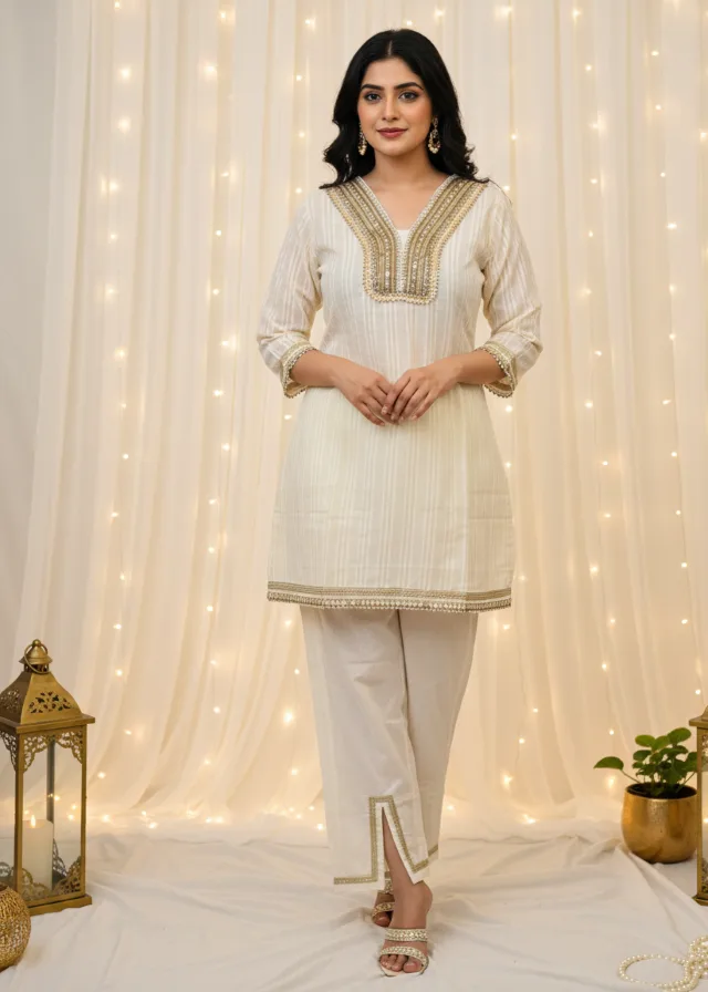 Kurta Style: Straight silhouette, typically mid-thigh to knee-length, offering a contemporary and comfortable fit.