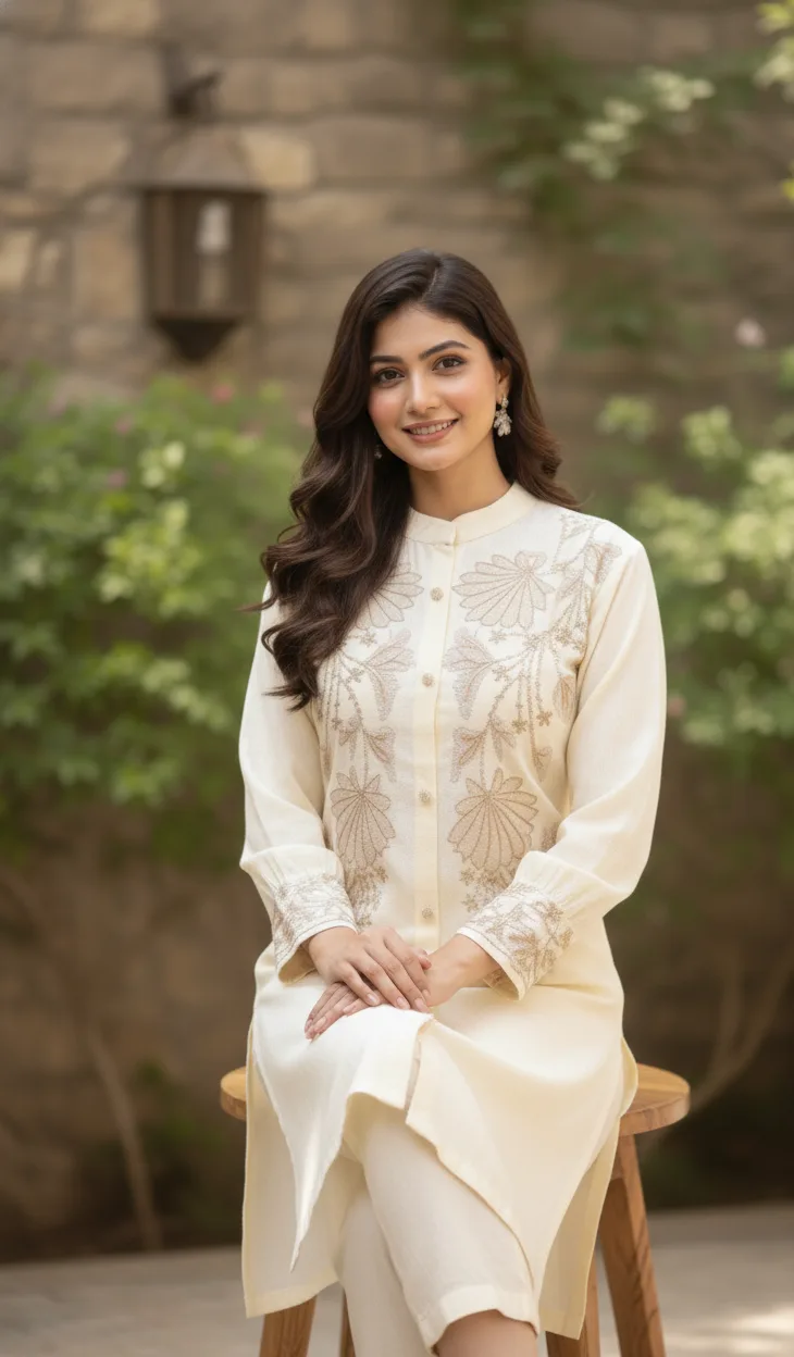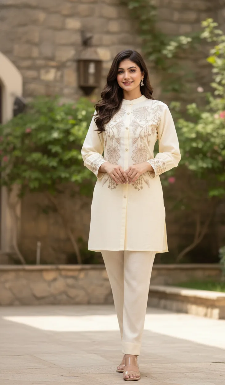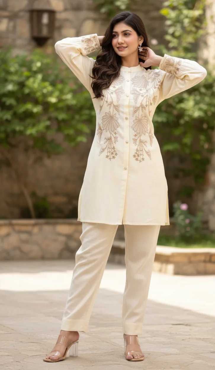 Product: 2-Piece Embroidered Co-ord Set (Tunic & Trousers).