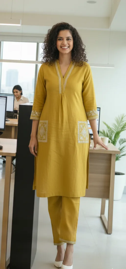 Kurta Fabric: Cotton slub with subtle weave texture, enhancing the overall look.