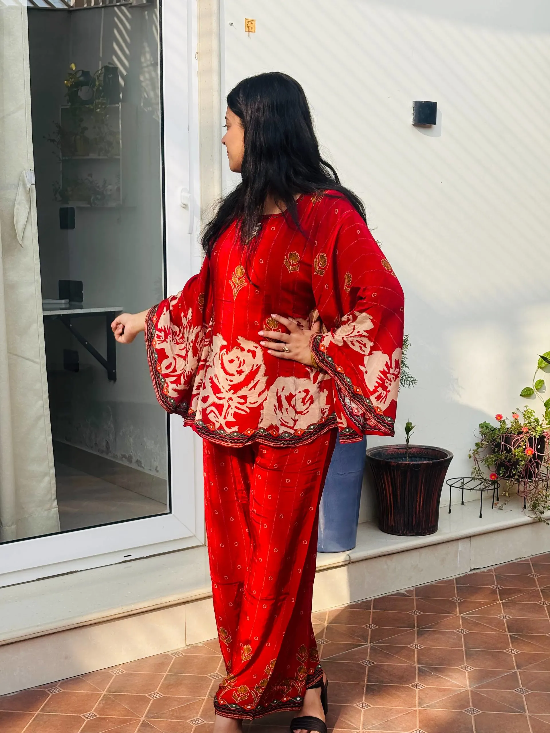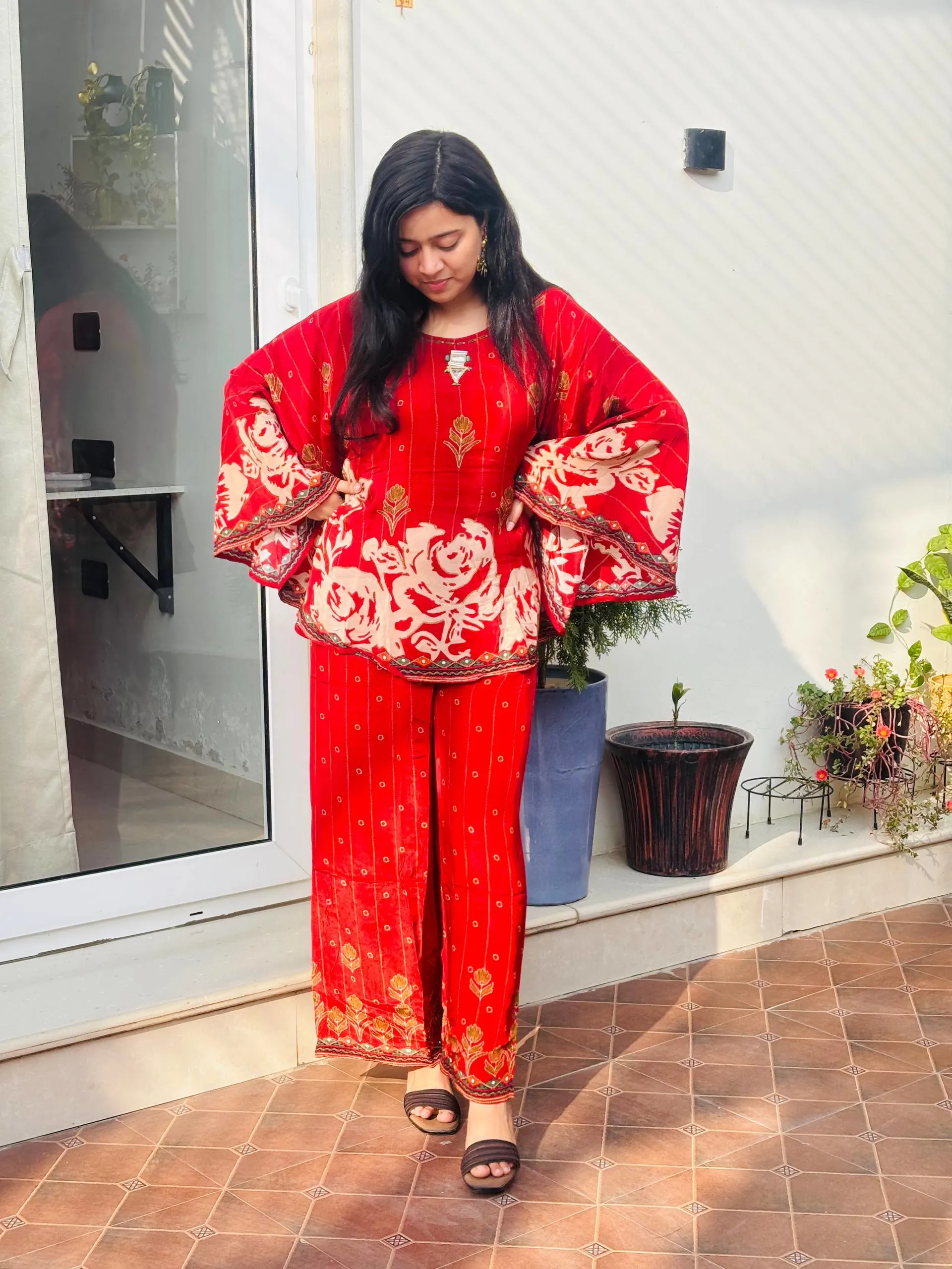 Style: Elegant 2-piece Co-ord Set (Kaftan Top & Trousers/Palazzos).