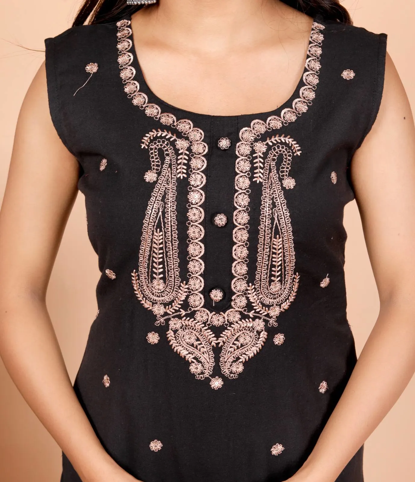 Key Detail: Heavy Contrast Embroidery on the neckline in a beautiful Paisley design.