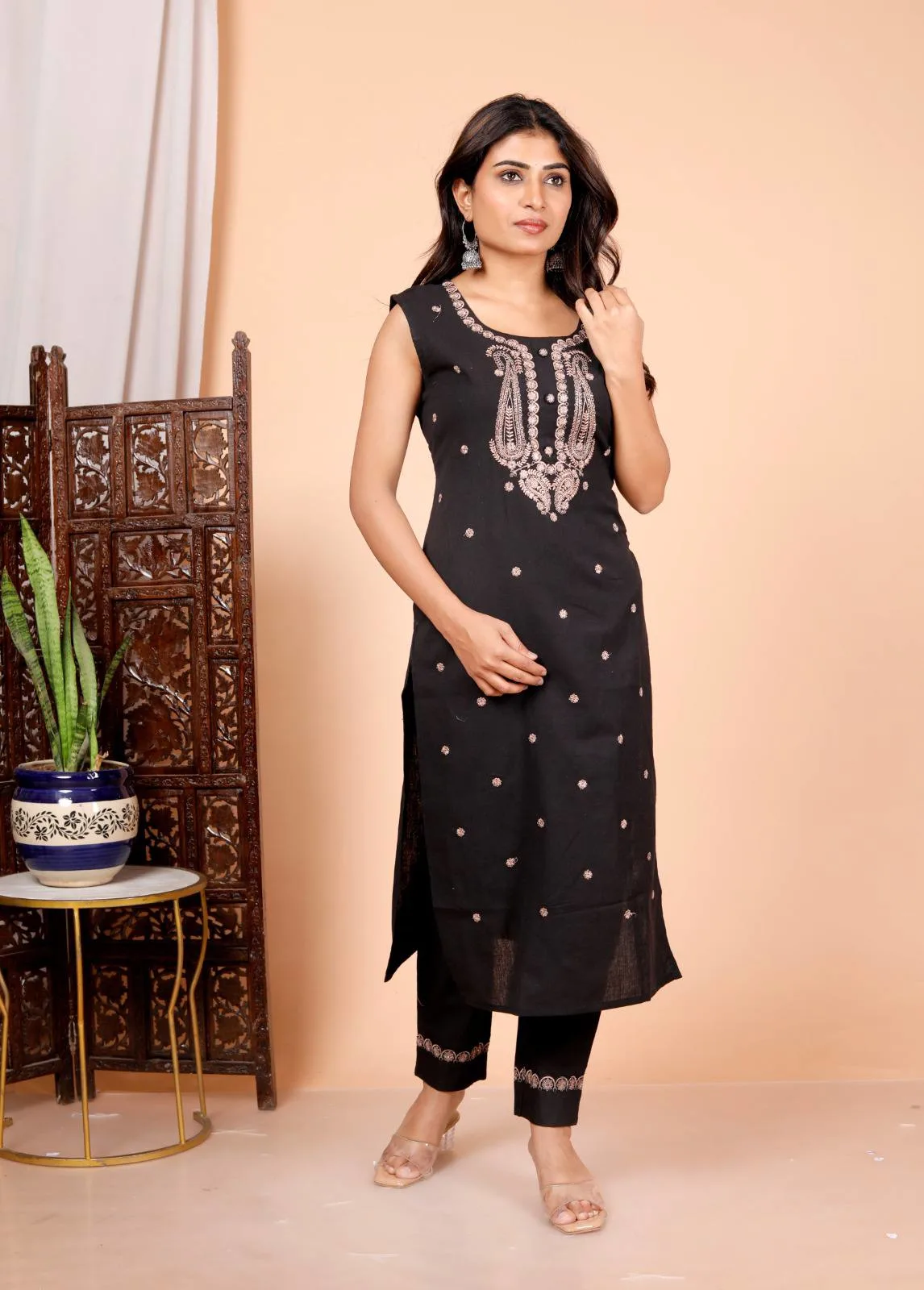 Set Includes: Embroidered Kurta and Matching Trousers.