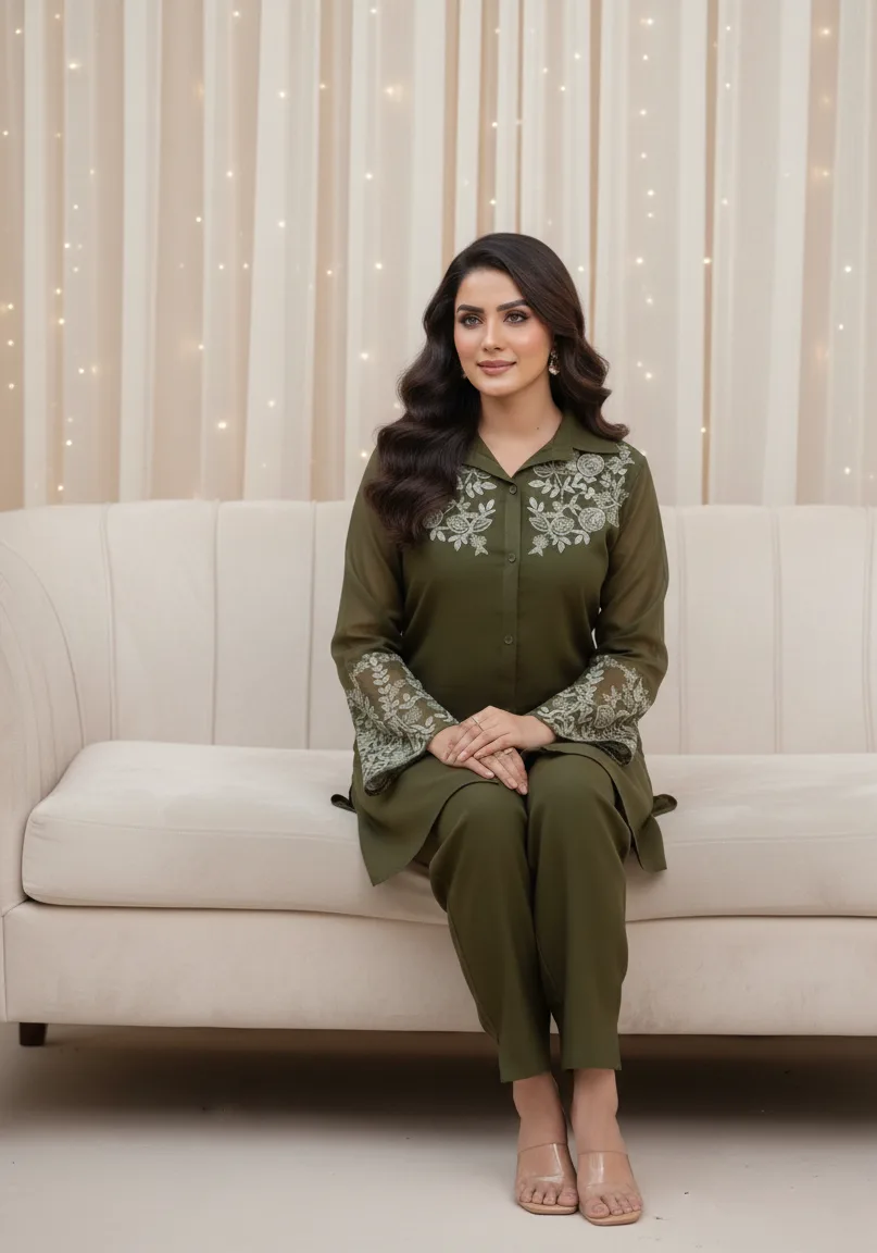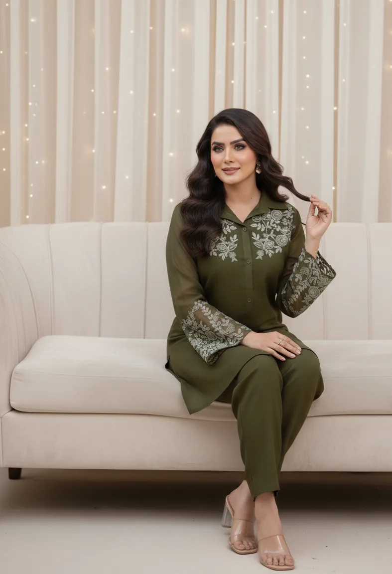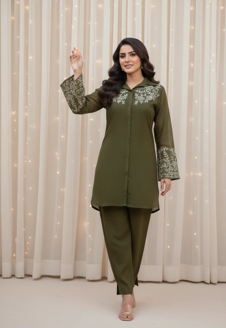 Style: Elegant two-piece Co-ord Set (kurta and Trousers).