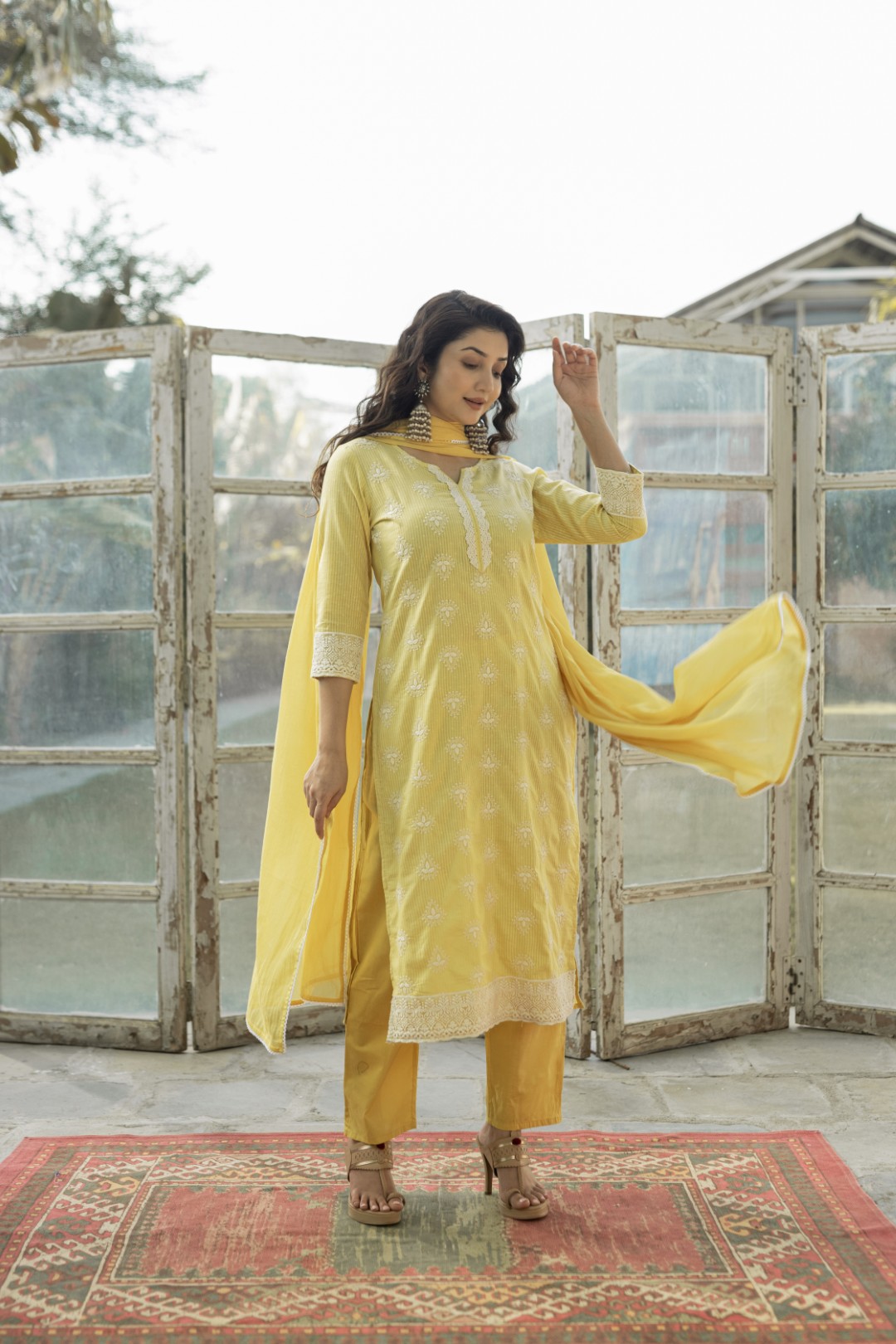 Dupatta: Lightweight plain yellow dupatta included – soft and flowy for comfort.