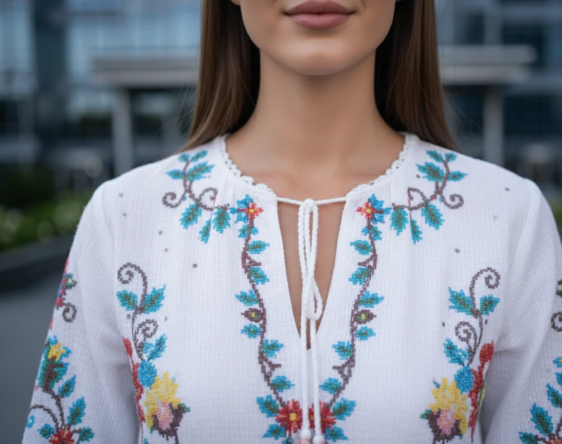 Vibrant Color Palette: Features high-contrast, multi-color thread work (red, blue, yellow, green, etc.).