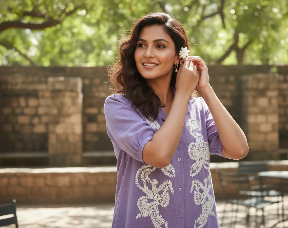 Color & Fabric: Beautiful, soft Lavender shade in a breathable, textured fabric.