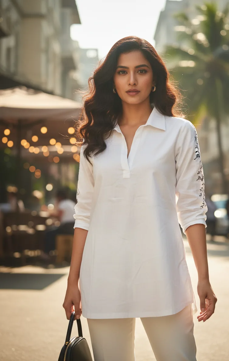 Design Highlight: Unique embroidery motif on the Upper Back Yoke and along the Sleeves.