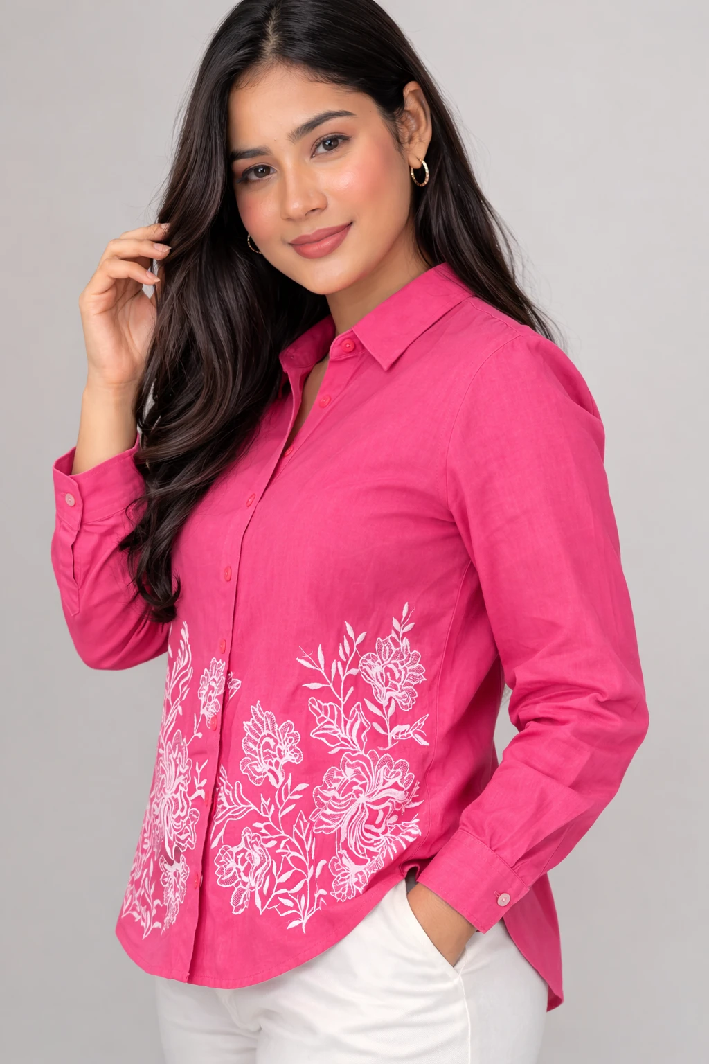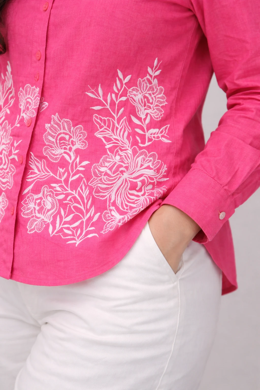 Pink Shirt With White Embroidery Pink Shirt With White Embroidery