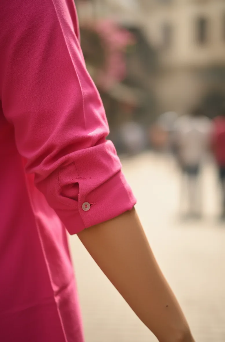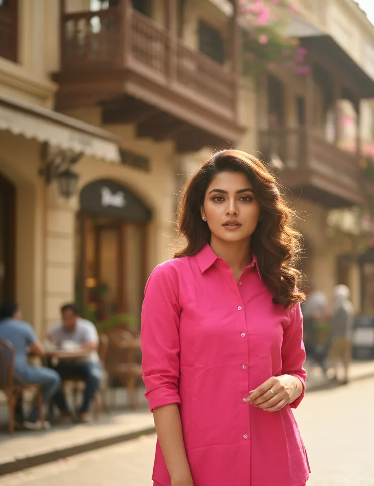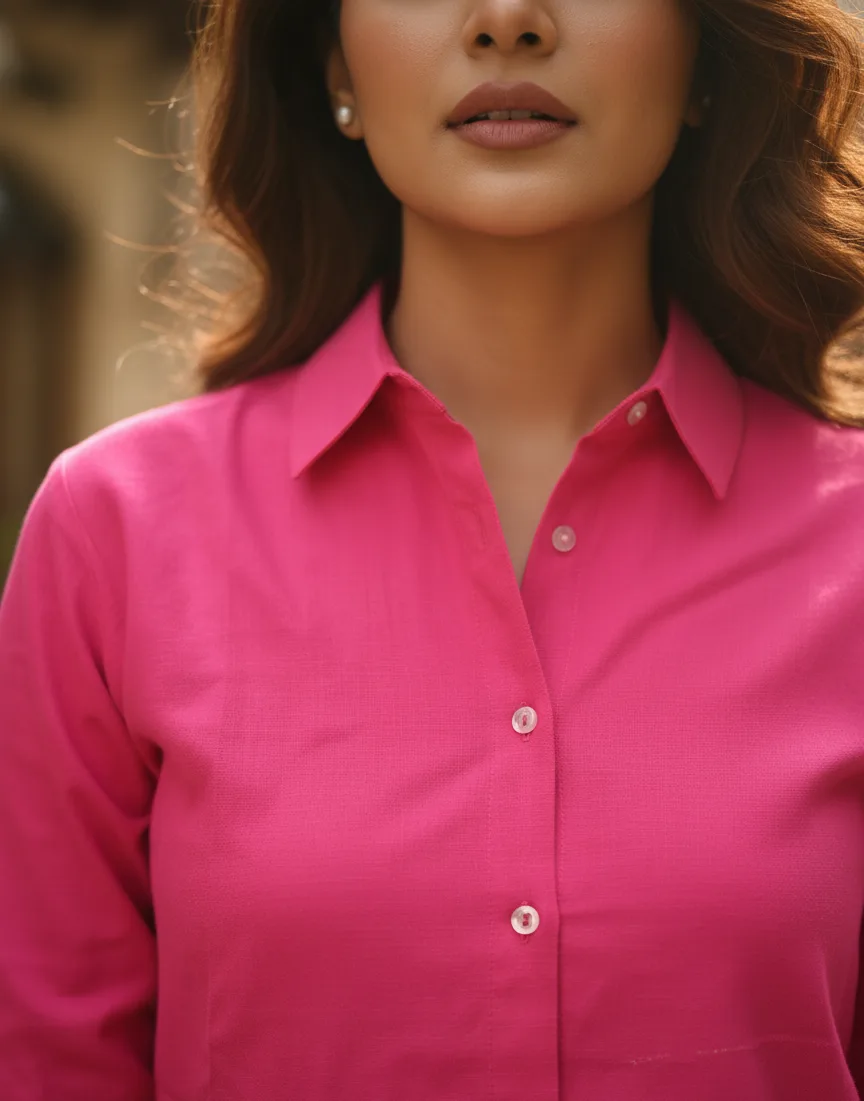 Look: Bold, monochromatic, and perfect for statement office wear or smart casual events.Style: Traditional Collared Button-Down Shirt.