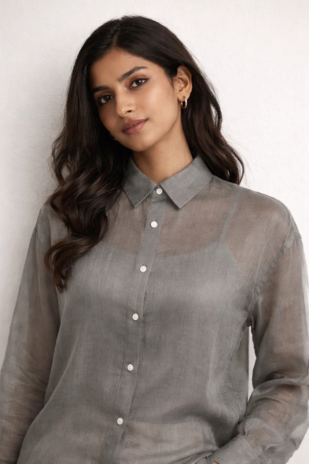 Product Name: Women’s Tissue Shimmer Button-Down Shirt.
