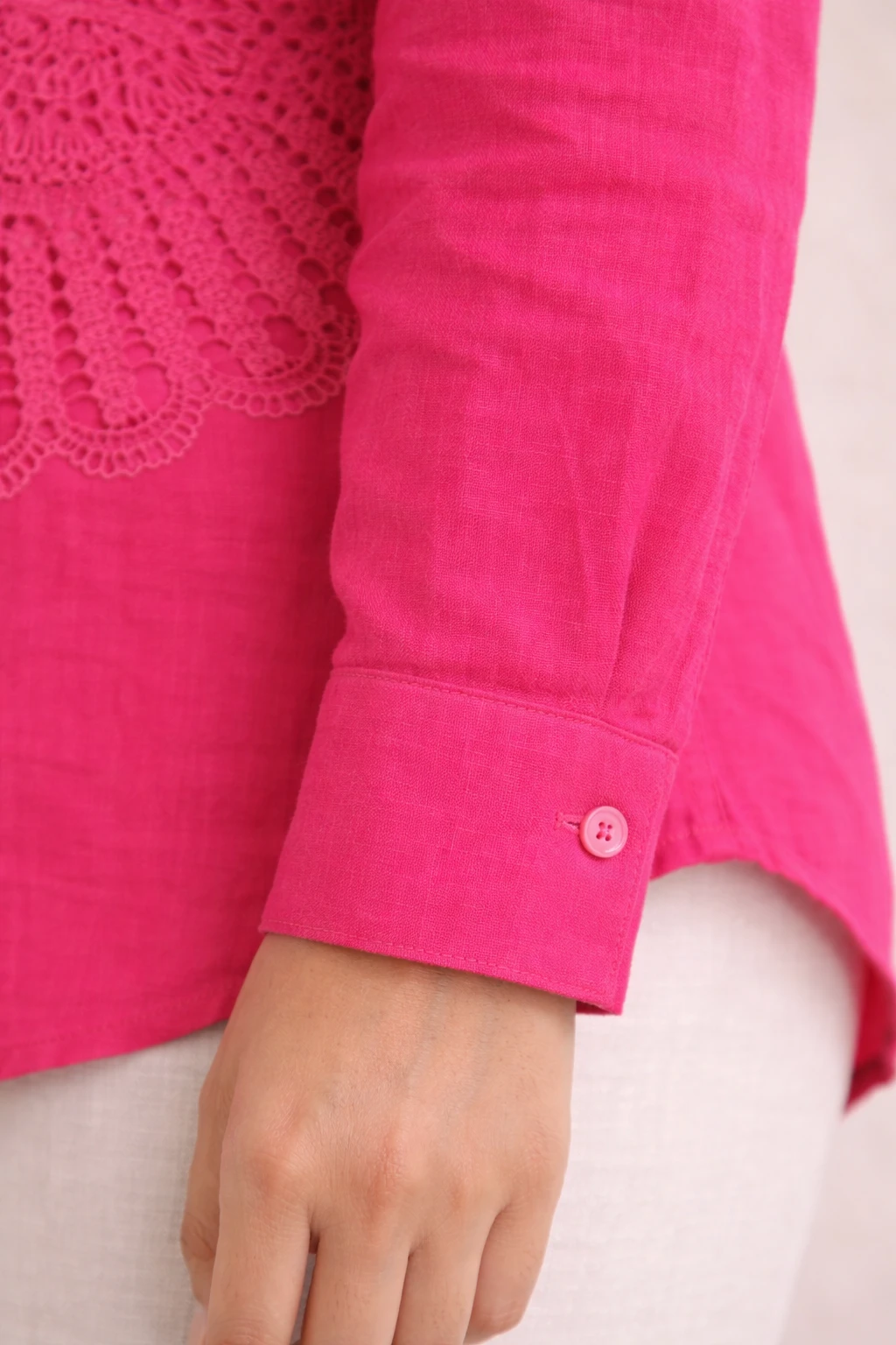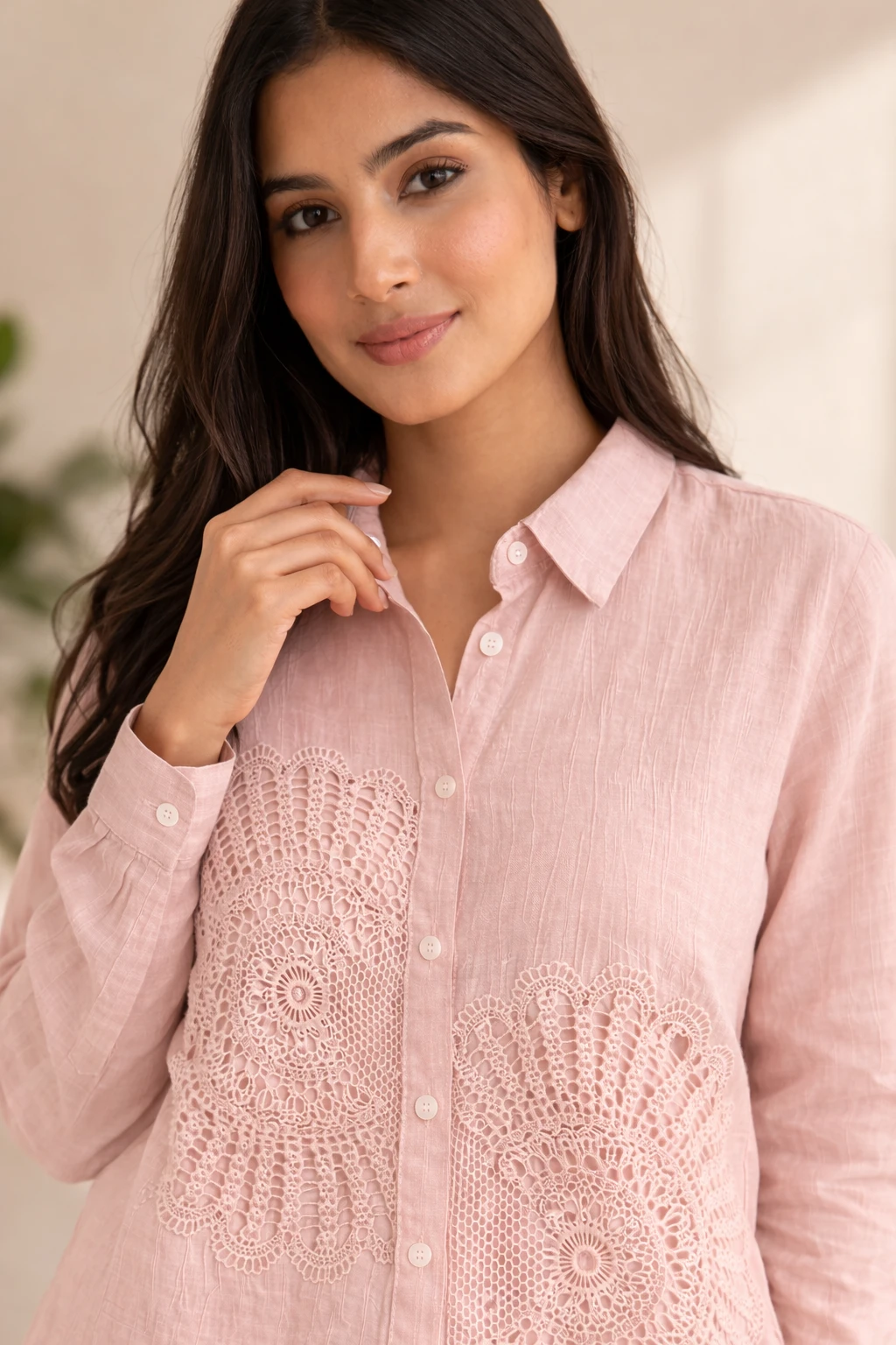 Style: Blends a classic tailored silhouette with bohemian-inspired eyelet embroidery for a modern, artisanal look.
