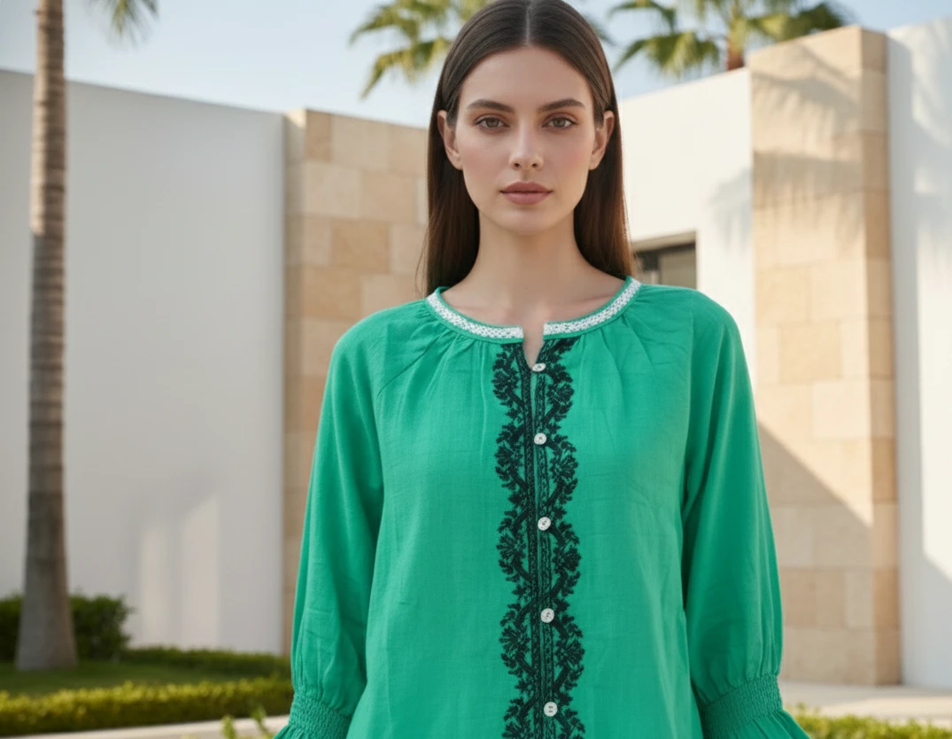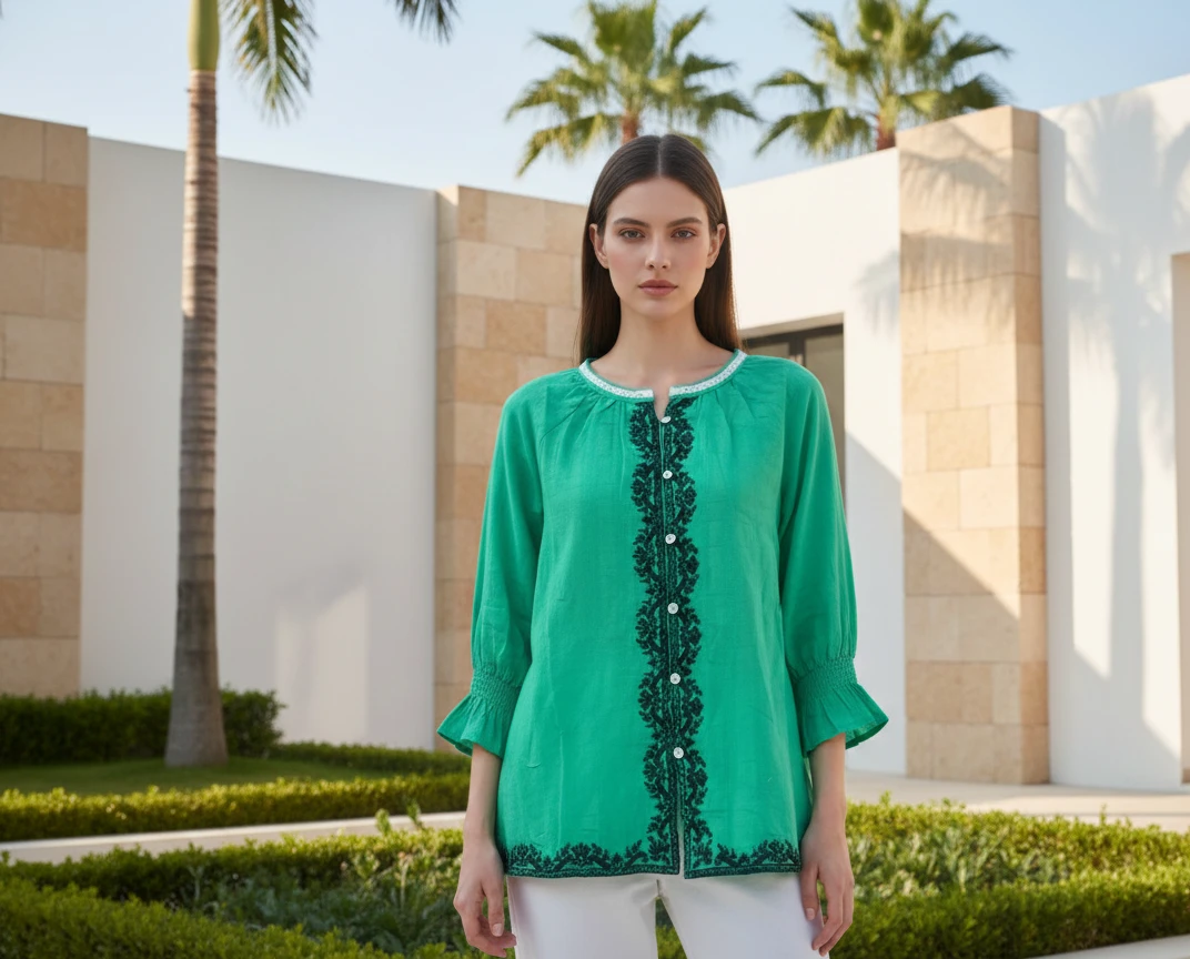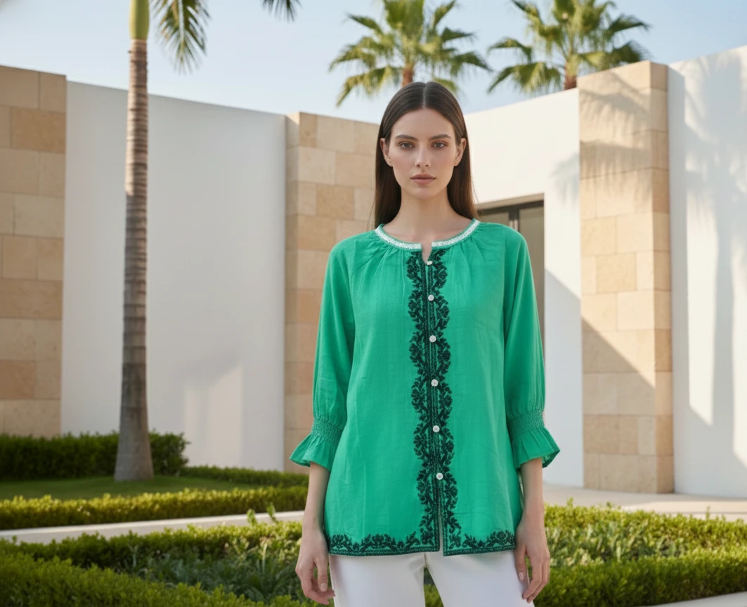 Style: Vibrant Green Embroidered Shirt.
