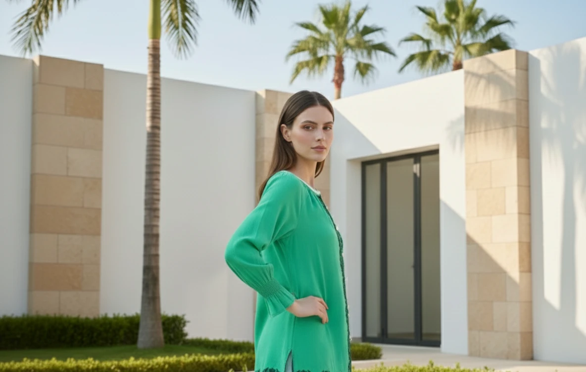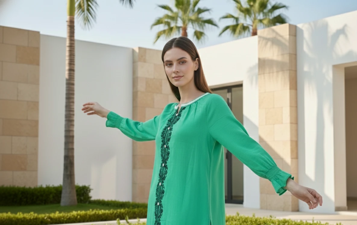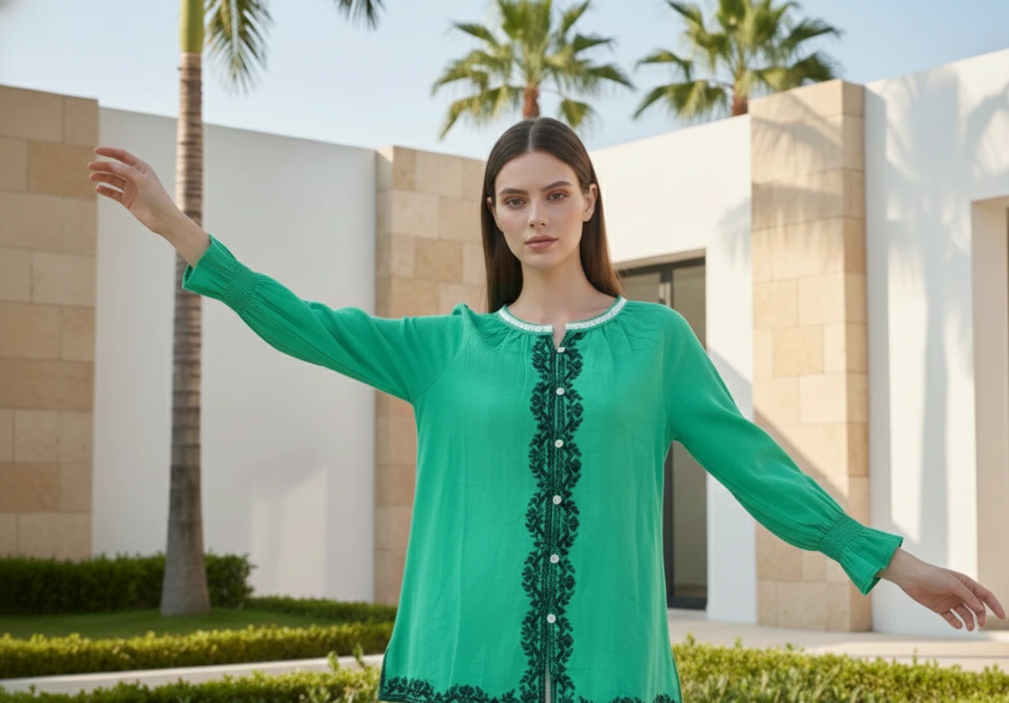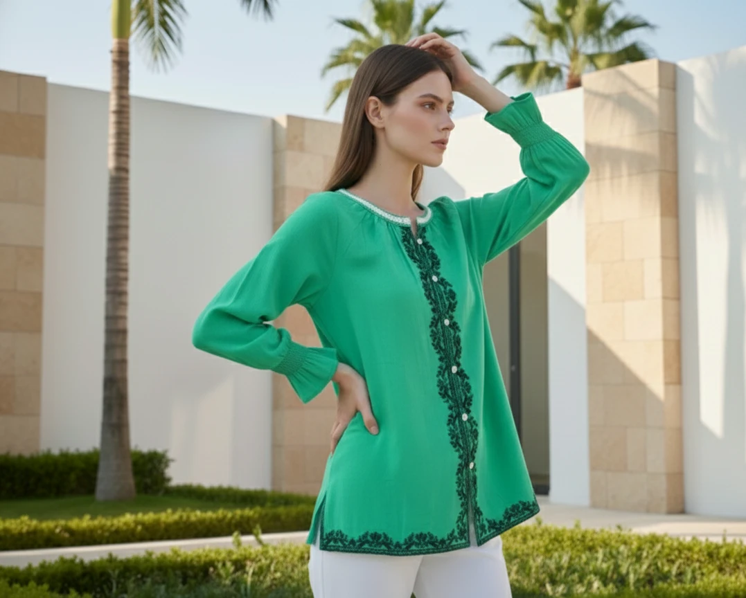 Style: Vibrant Green Embroidered Shirt.