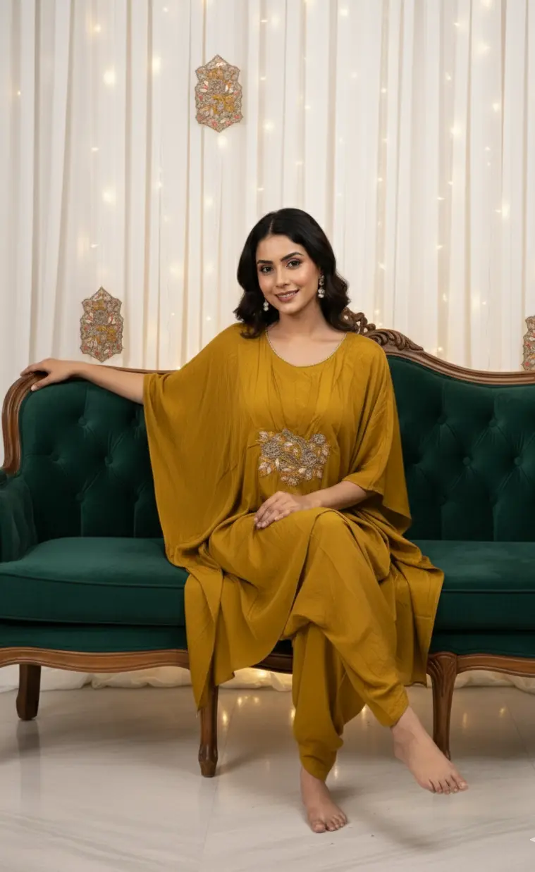 Relaxed, oversized fit of the Kaftan for comfortable movement.