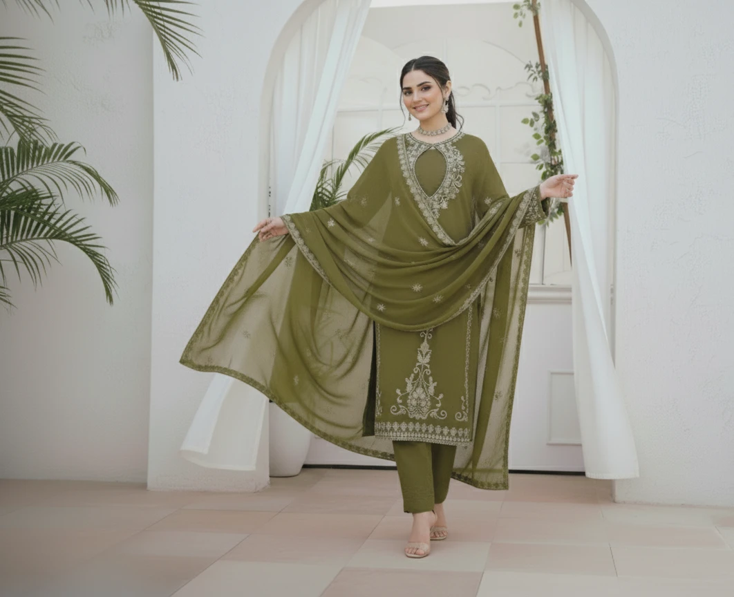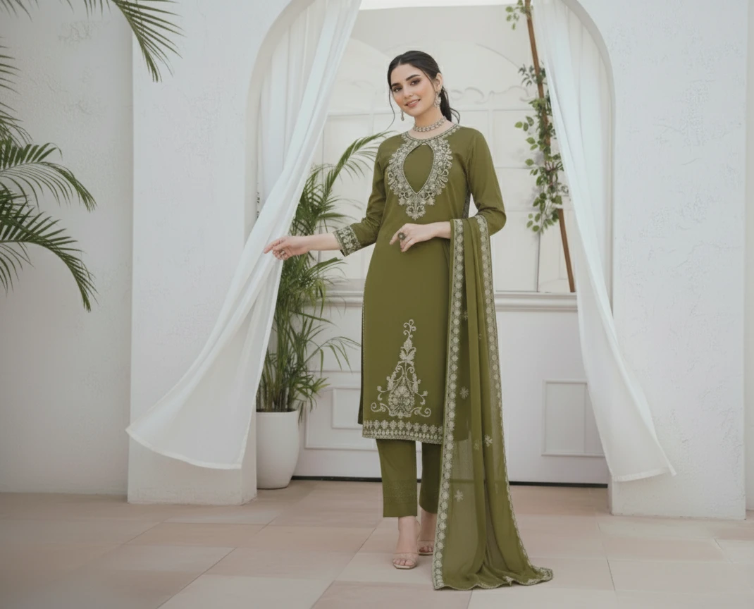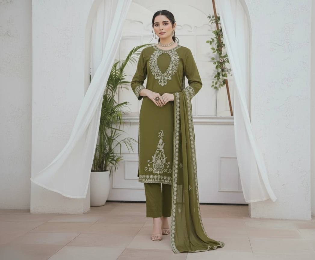 Product: Elegant 3-Piece Embroidered Suit Set.