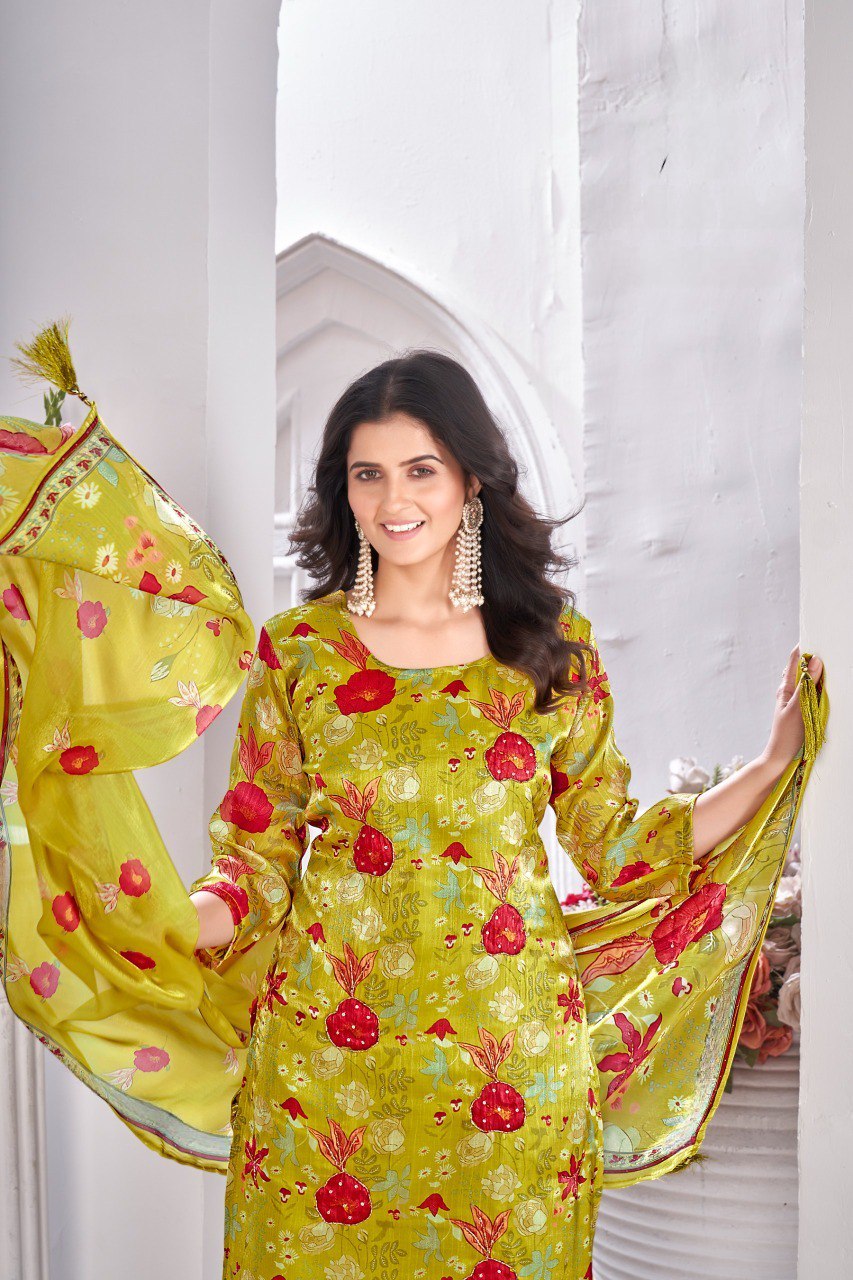 Style Note: A vibrant ensemble perfect for festive occasions, haldi/mehendi ceremonies, or day-time celebrations, bringing freshness and radiance to your wardrobe.
